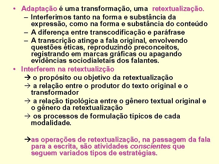 “O uso adequado dos recursos linguísticos é fundamental para garantir a clareza e a fluidez do texto retextualizado, independentemente da modalidade.”